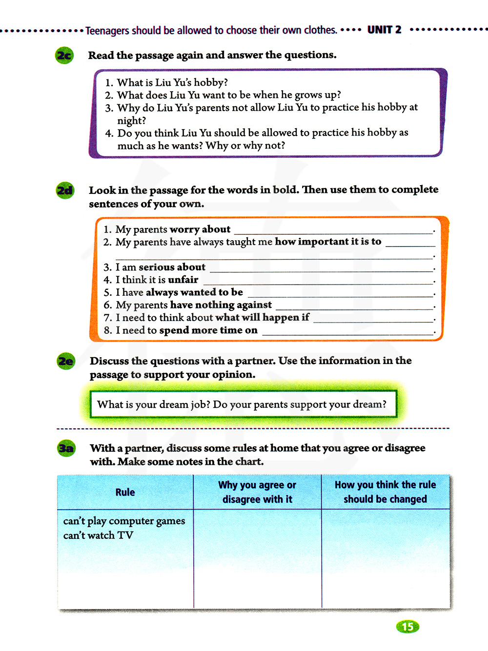 和一个同伴讨论你同意或不同意的一些家庭规则,在表格中做一些笔记。