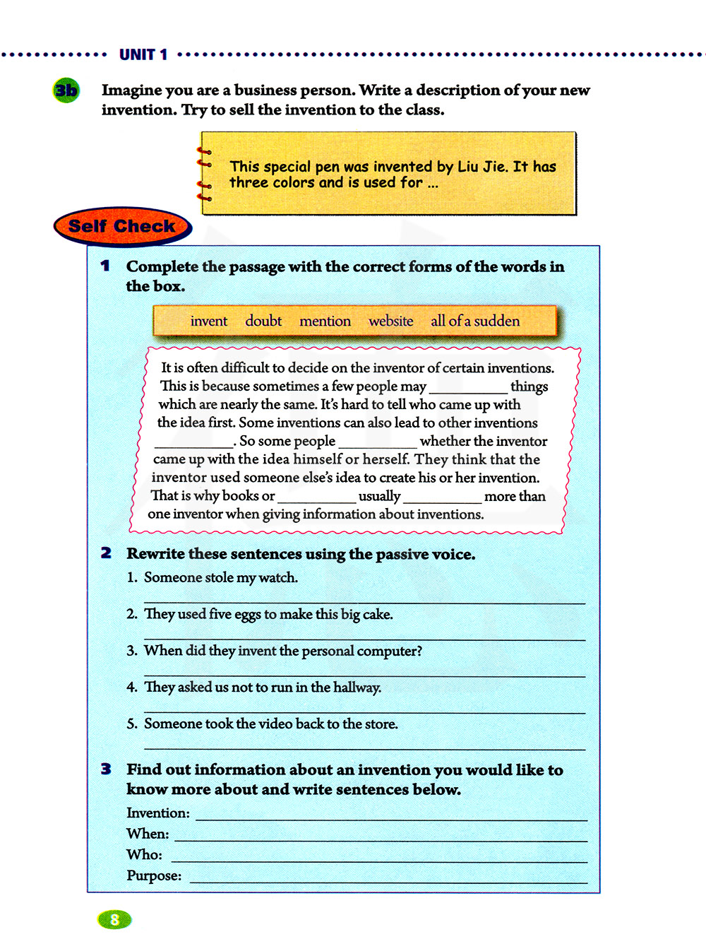找出一项你想知道更多的发明的信息,并将句子写在下面。