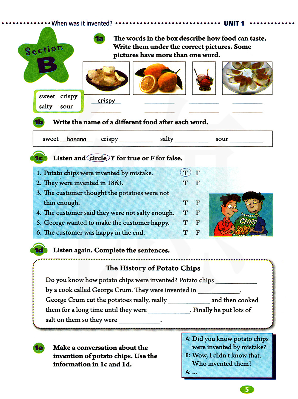 就炸土豆片的发明编对话,使用1c和1d的信息。