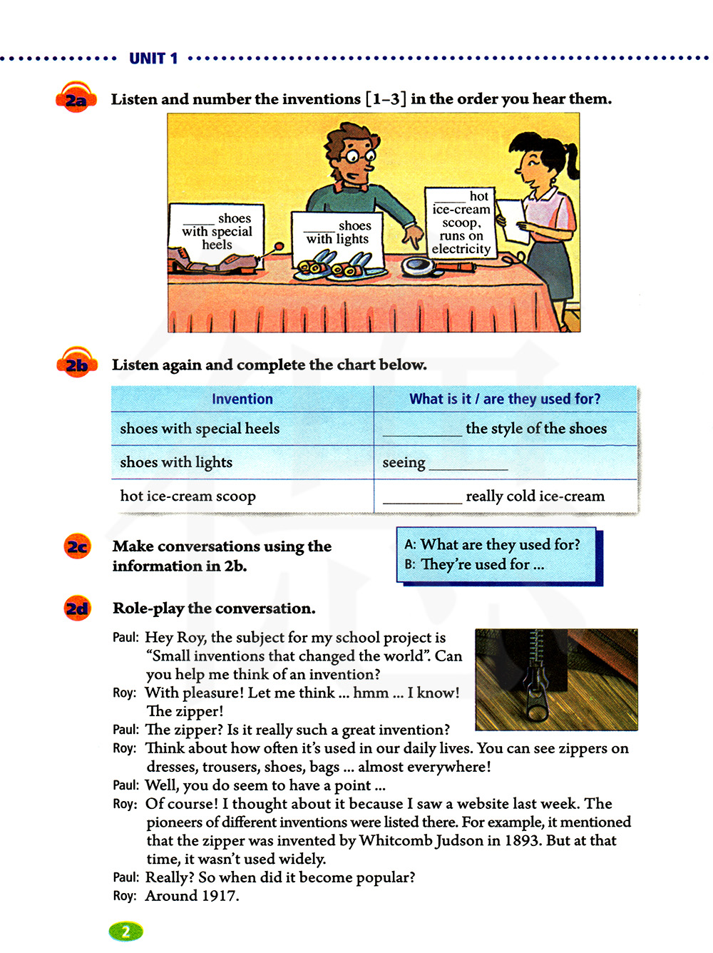 听一听,根据你听到的顺序给发明物标上序号(1-3)
