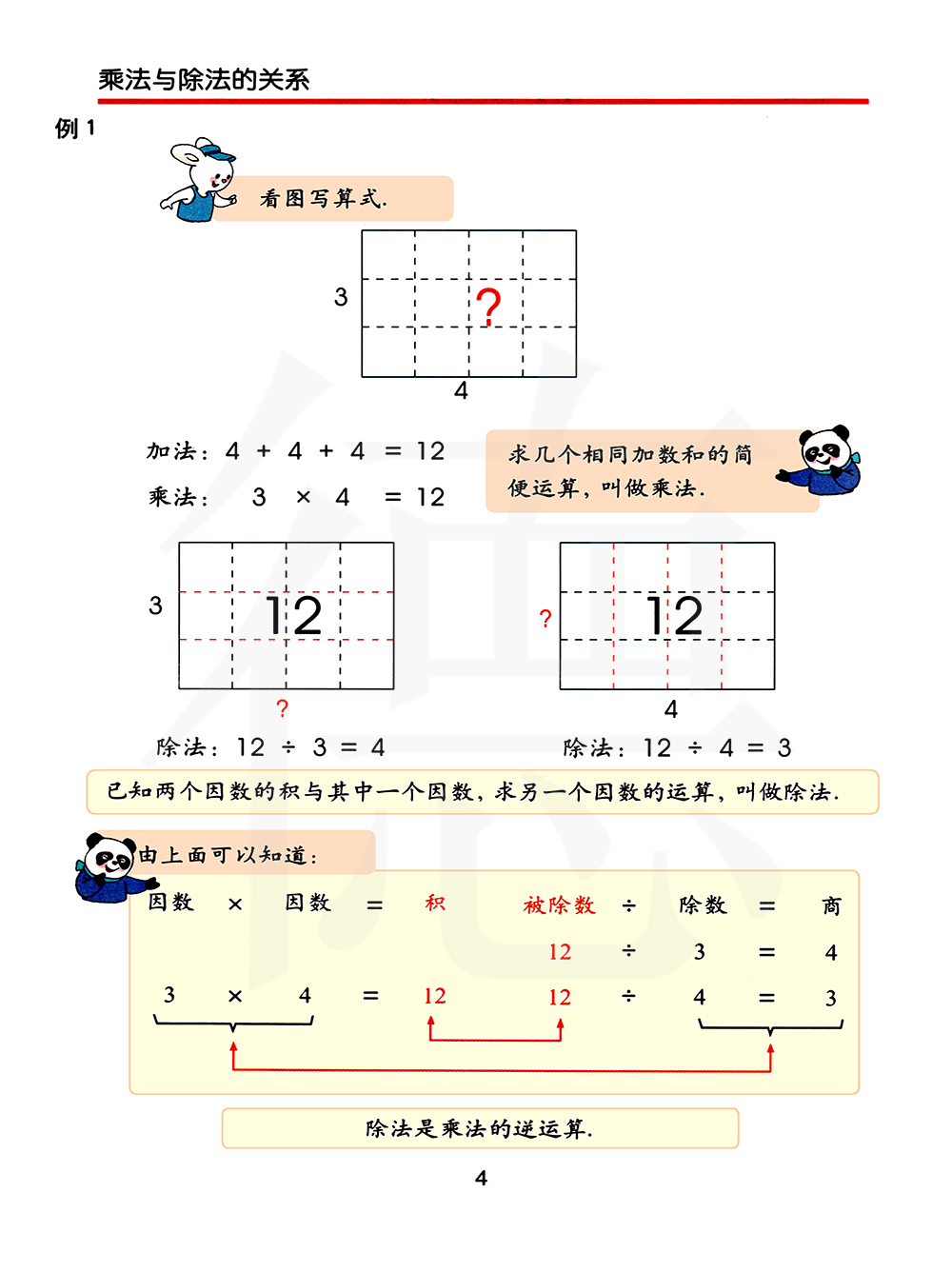 (2)除法:已知两个因数的积与其中一个因数,求另一个因数的运算。