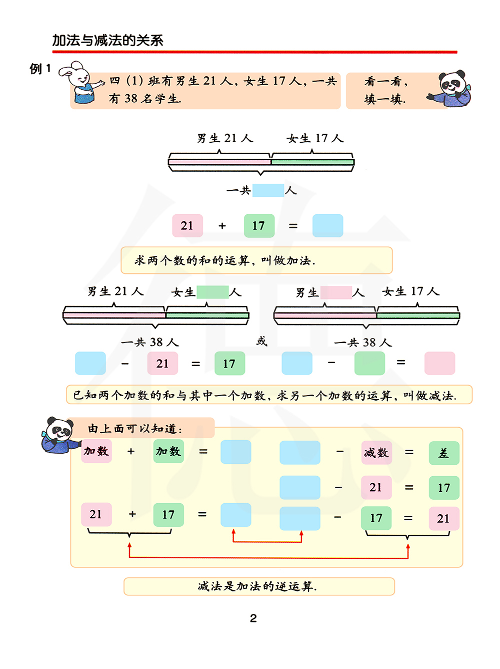 (2)减法:已知两个加数的和与其中一个加数,求另一个加数的运算。