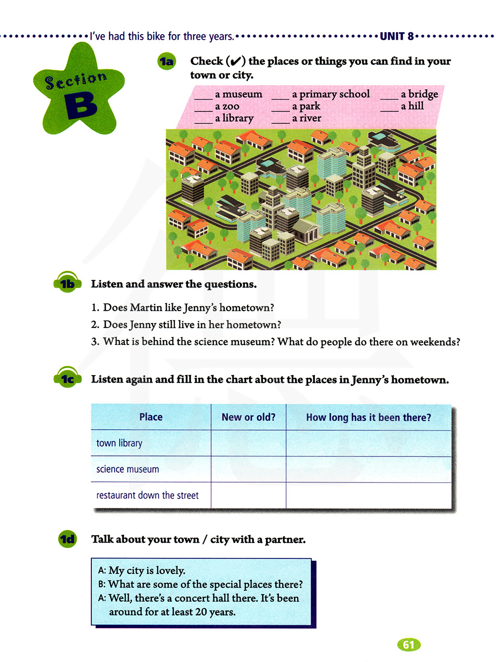 再听一遍,然后把珍妮家乡的地方填成表格。