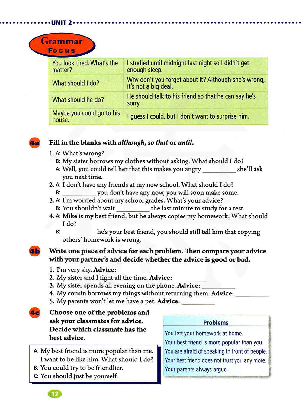 选择问题并问一问你同学的建议。决定哪个同学有最好的建议。