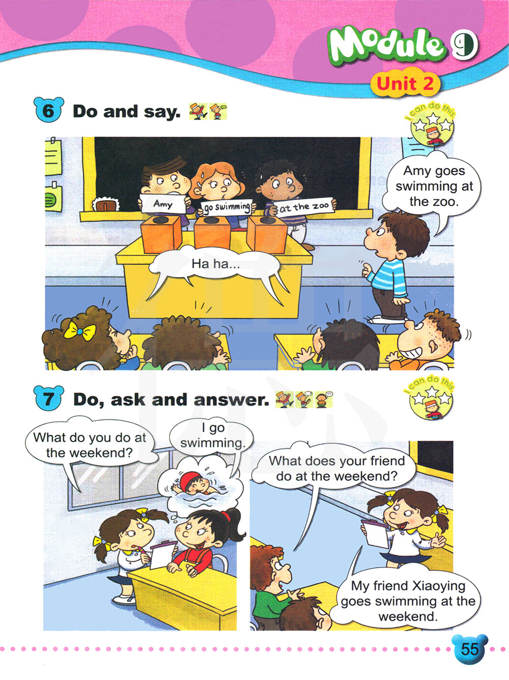 我朋友小英周末去游泳。