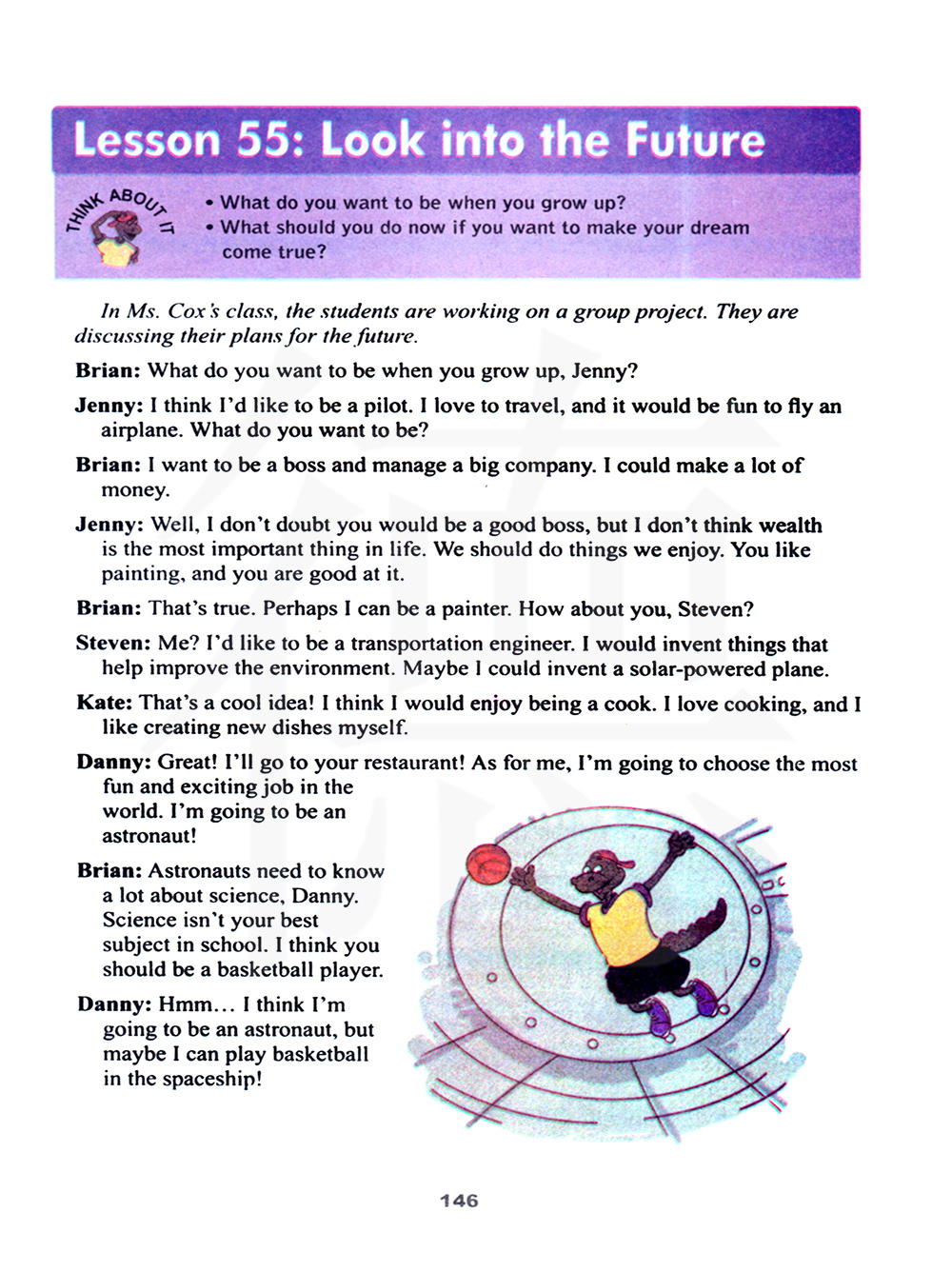 嗯…我想我将成为一名宇航员,也许我可以在宇宙飞船里打篮球!
