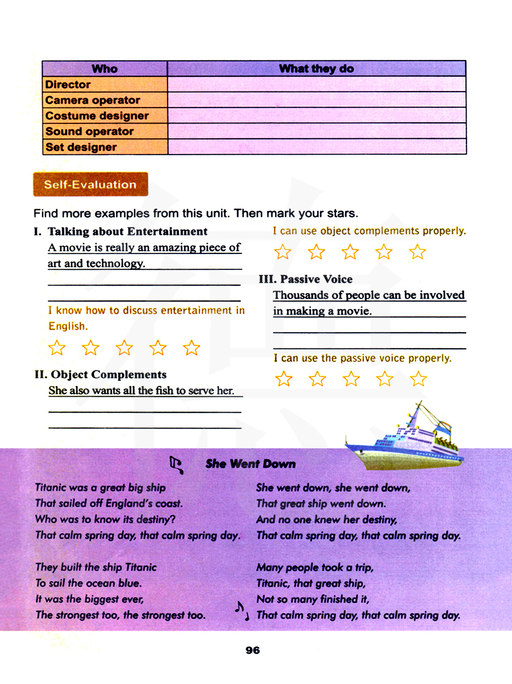 泰坦尼克号是一艘大船,在英国海岸航行。谁知道它的命运呢?他们建造了泰坦尼克号在海洋中航行。它是有史以来最大的,也是最强的,也是最强的。她走了,她走了,那艘大船沉了,没有人知道她的命运,那个平静的春天,那个平静的春天。很多人都去旅行了,泰坦尼克号,那艘伟大的船,没有多少人完成它,那平静的春天,那平静的春天。