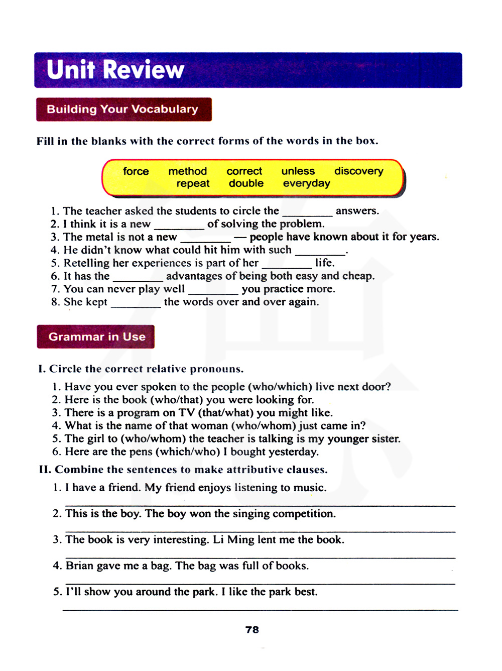 1 圈出正确的关系代词