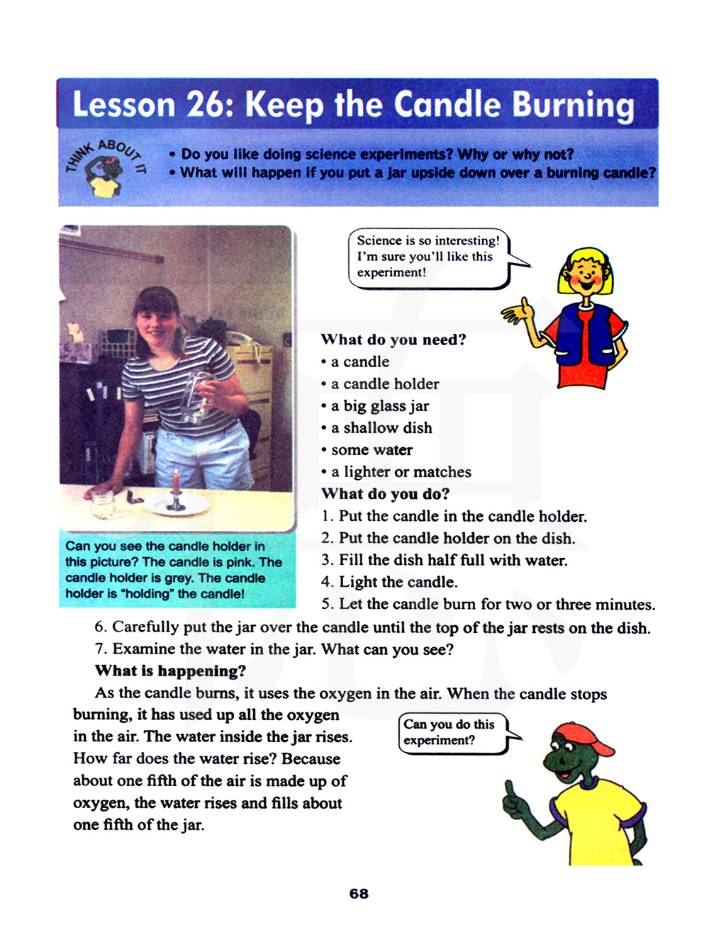 你喜欢做科学实验吗?为什么喜欢或者为什么不喜欢?如果你在燃烧的蜡烛上倒置一个罐子会发生什么?