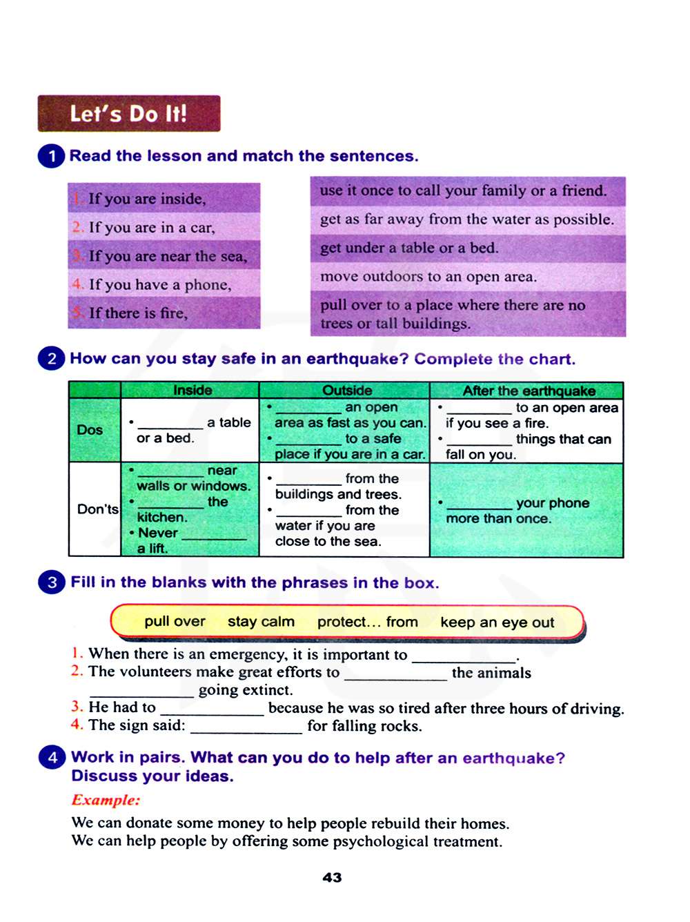 4 两人一组合作。在地震后你可以提供些什么帮助?讨论一下你的想法。