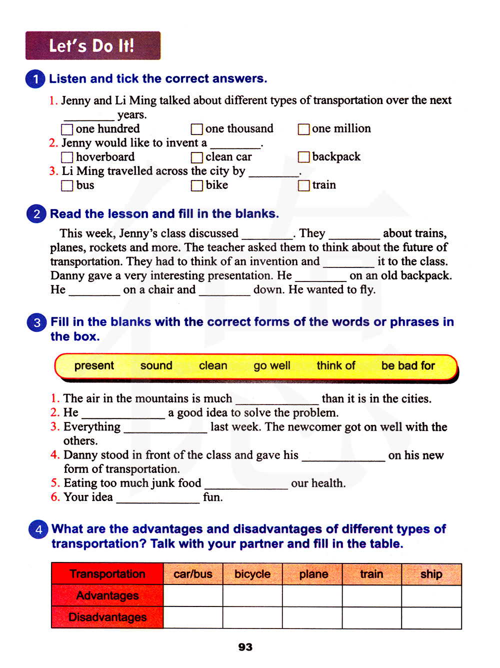 不同的交通方式有什么优势和劣势,和你的搭档谈论并填写表格。