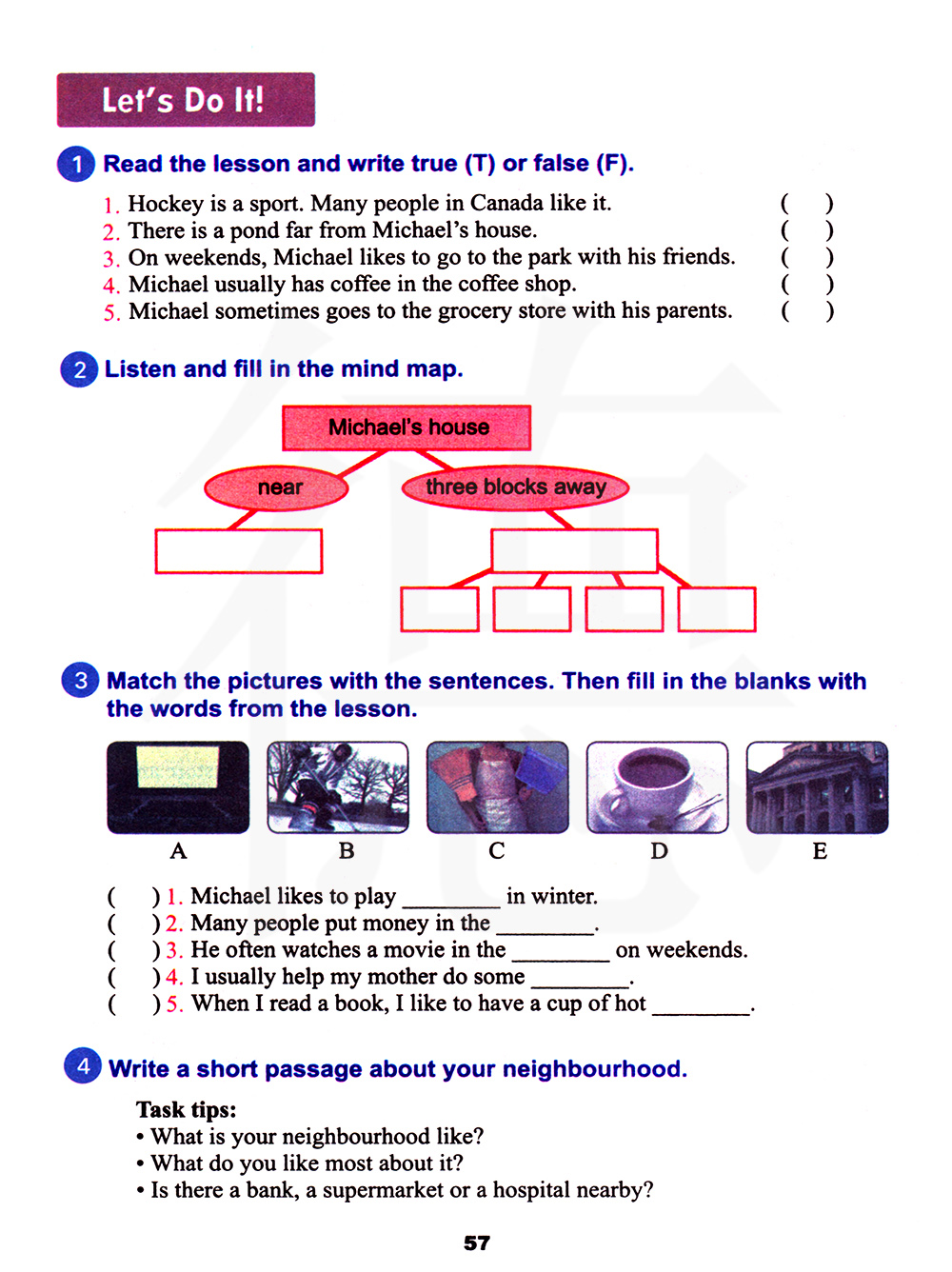 任务提示:你的社区是怎样的?你最喜欢它的什么?附近有银行,超市或者医院吗?