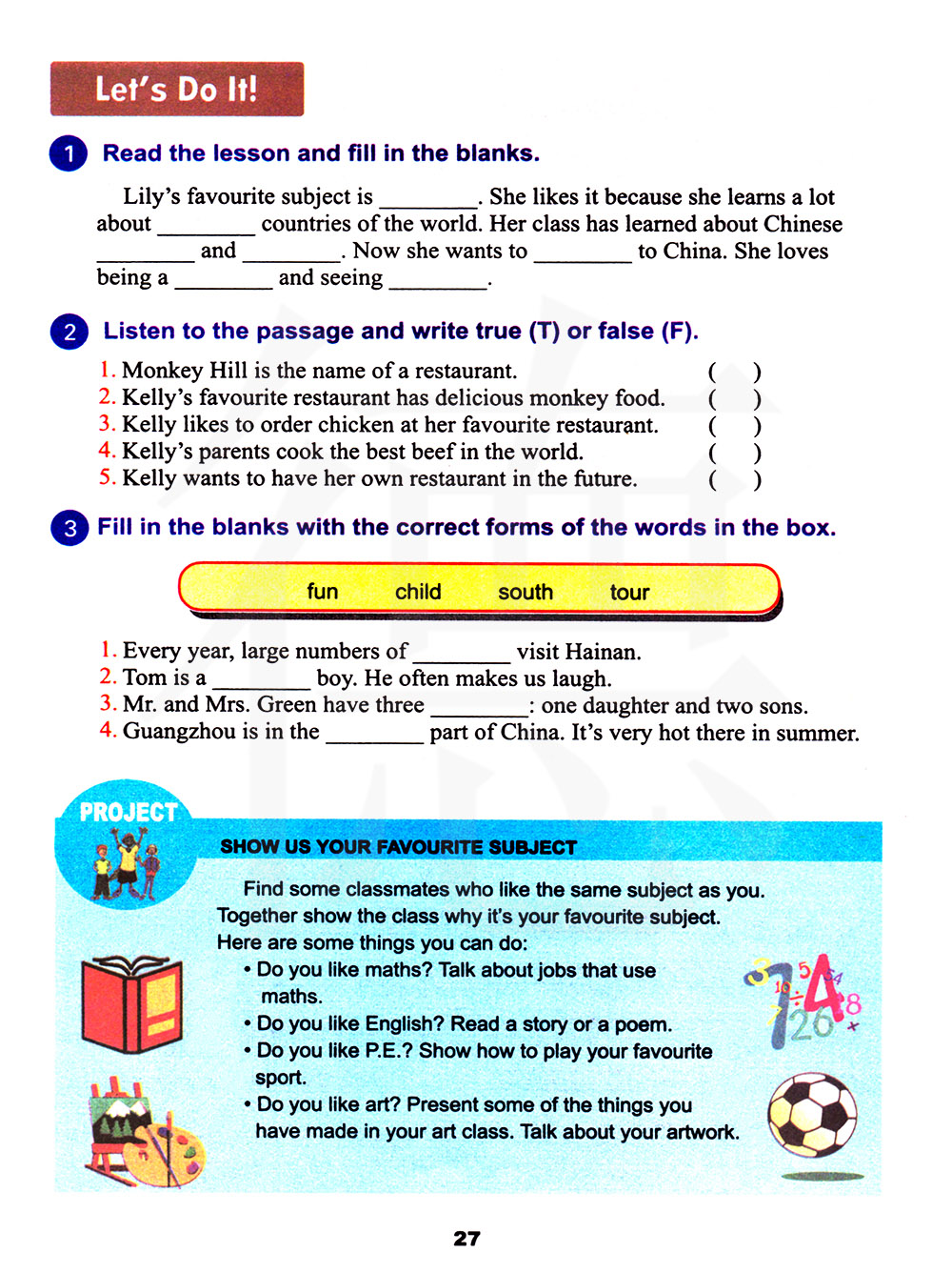 找出一些和你喜欢同一个科目的同学。一起给班里展示一下,为什么它是你最喜欢的科目。下面是你们可以做的一些事情: