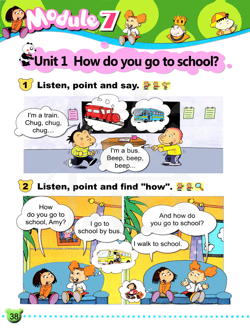 go to school 上学 go to work 上班 walk to school 步行去学校 by bus 乘公共汽车