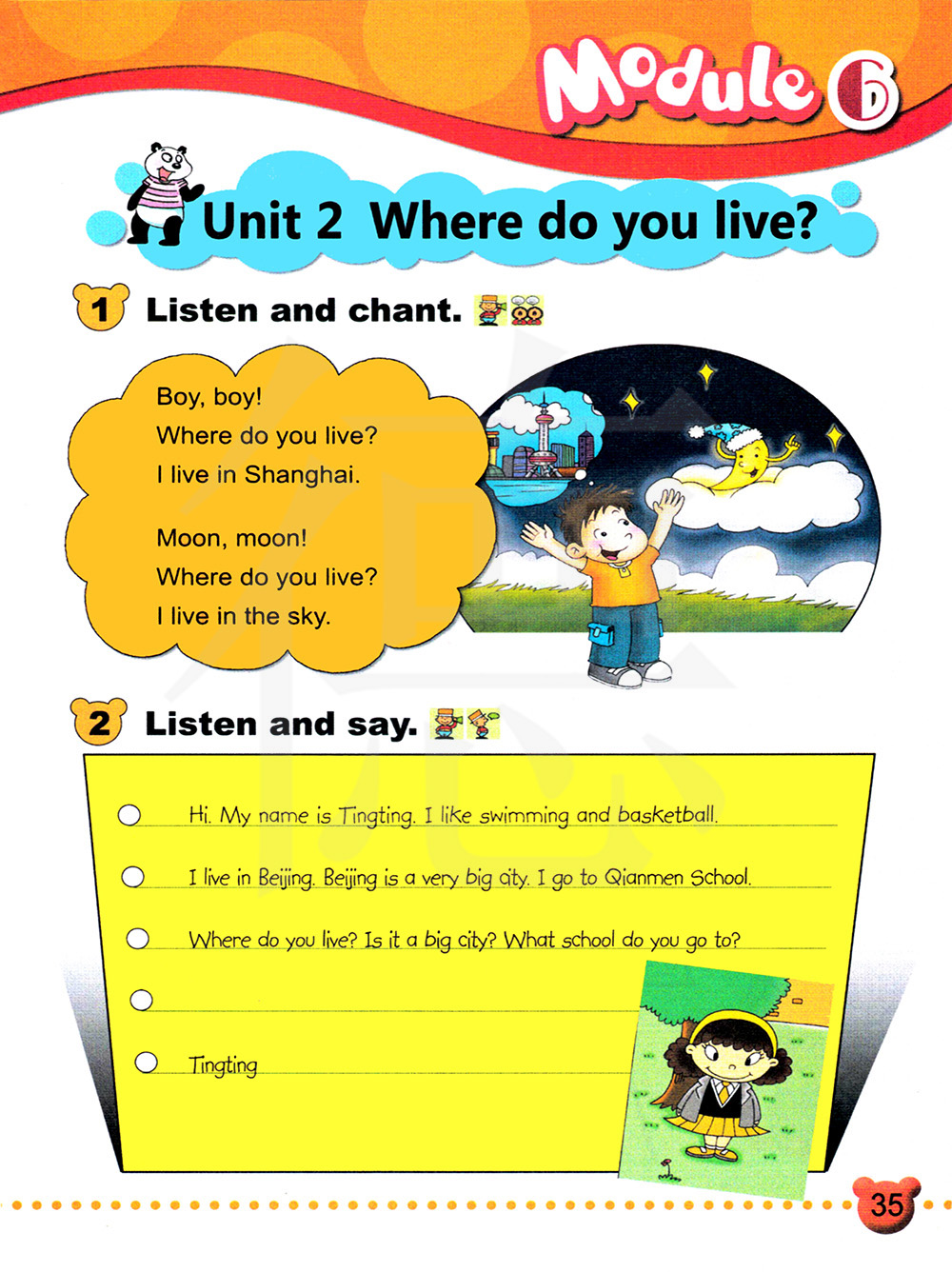 男孩,男孩!你住在哪里?我住在上海。月亮,月亮!你住在哪里?我住在天上。