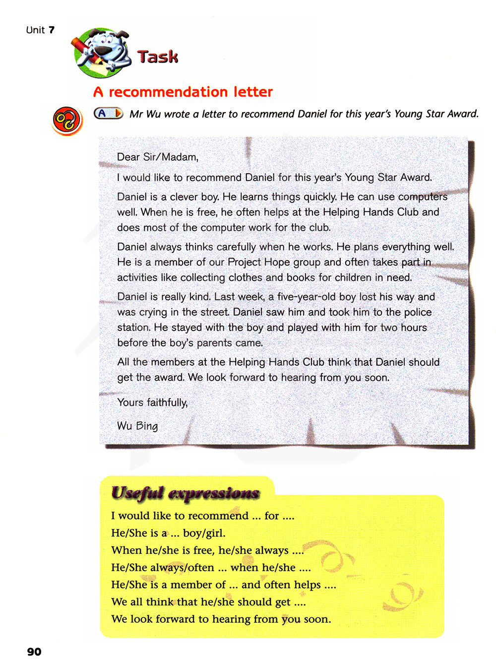 吴先生写了一封推荐丹尼尔获今年的“新星奖”。