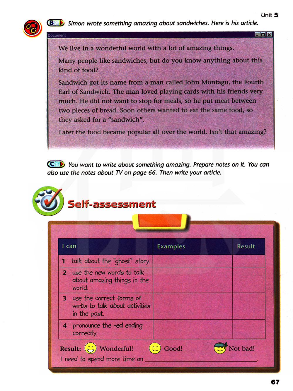 你想写一些令人惊异的事物。准备相关的笔记。你也可以用第66页关于电视的笔记。然后写你的文章。