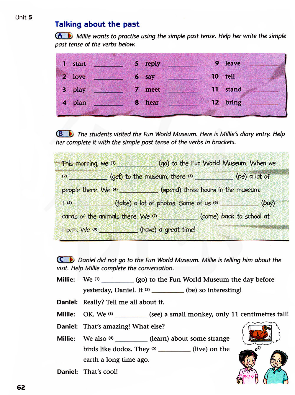 学生们参观了趣味世界博物馆。这是米莉的日记记录。帮助她用括号里动词的一般过去式完成它。
