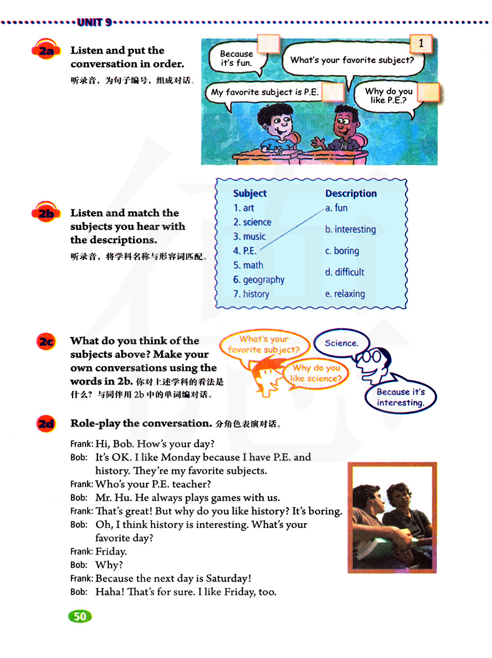 你对上述学科的看法是什么?与同伴用2b中的单词编对话。