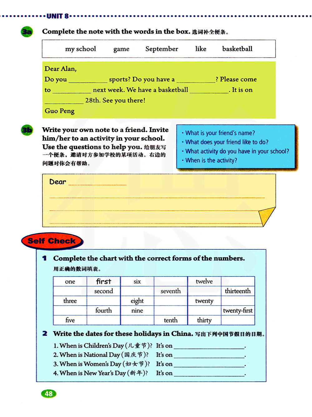 给朋友写一个便条,邀请对方参加学校的某项活动。右边的问题对你会有帮助。