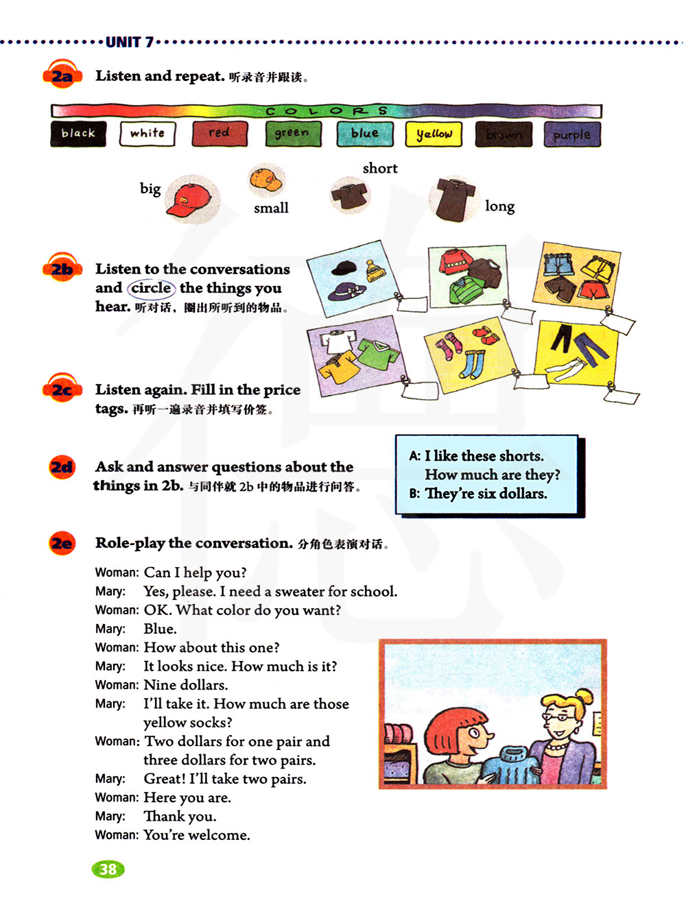 我能帮您吗?好的,我需要一件上学穿的毛衣。