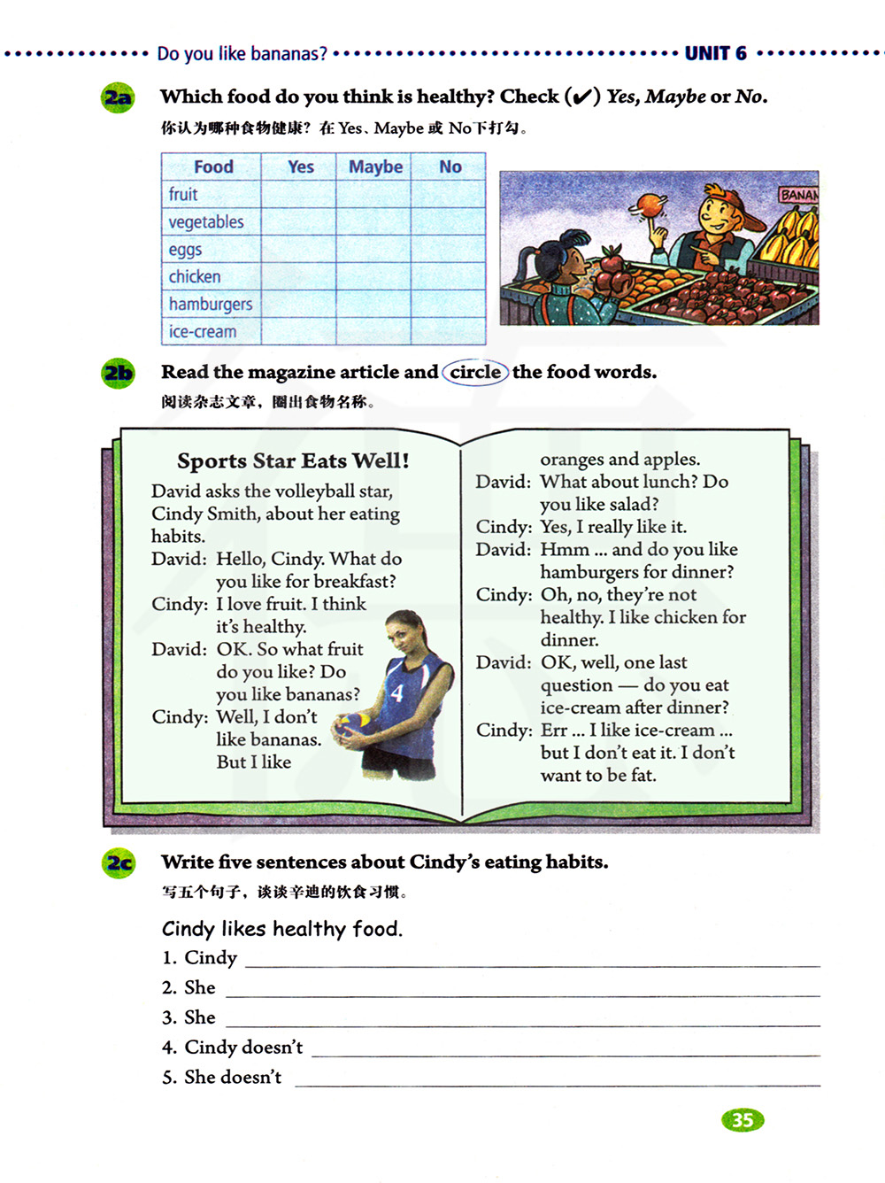 辛迪喜欢健康的食物。