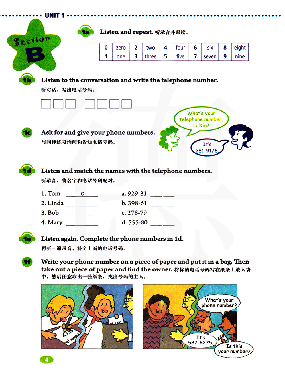 听录音,将名字和电话号码配对。