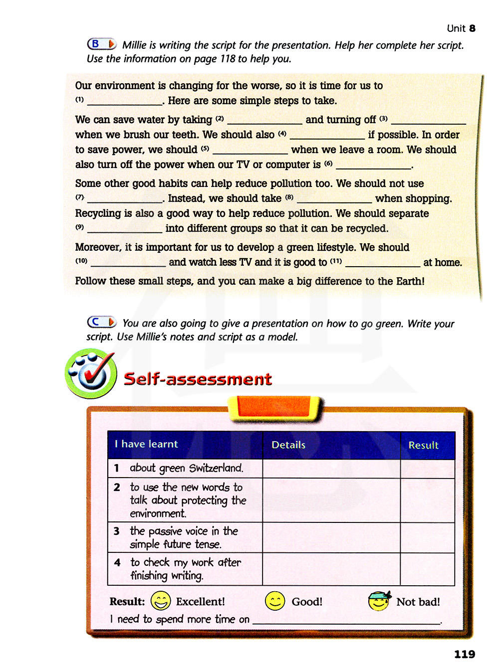 米莉正在为演讲写手稿。帮助她完成手稿。使用第118页的信息来帮助你。