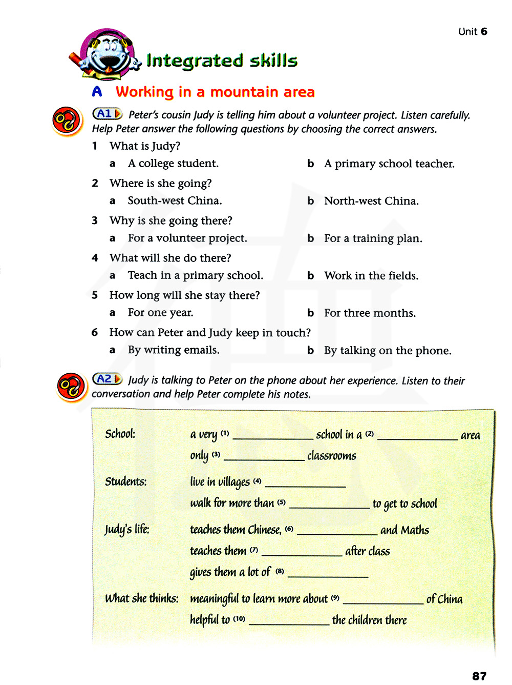 朱迪正在打电话跟彼得讲她的经历。听他们的对话并帮助彼得完成笔记。