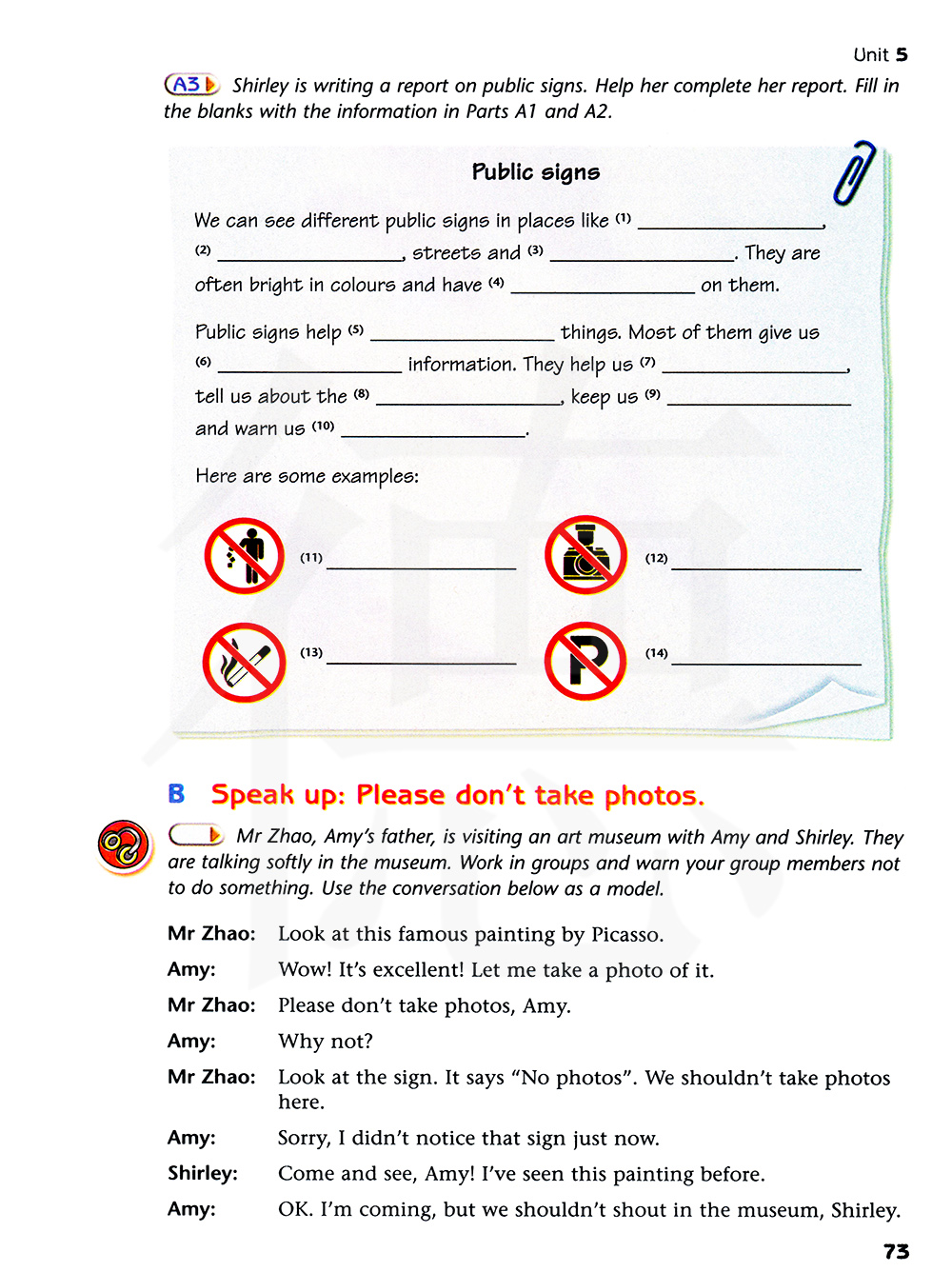 雪莉在写一份关于公共标志的报告。用部分a1和部分a2的信息填空。