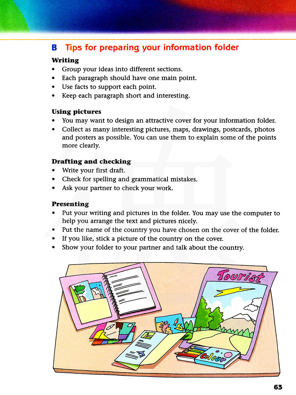 把你选择的国家的名字写在文件夹的封面。如果你喜欢,就贴一幅那个国家的图片在封面。