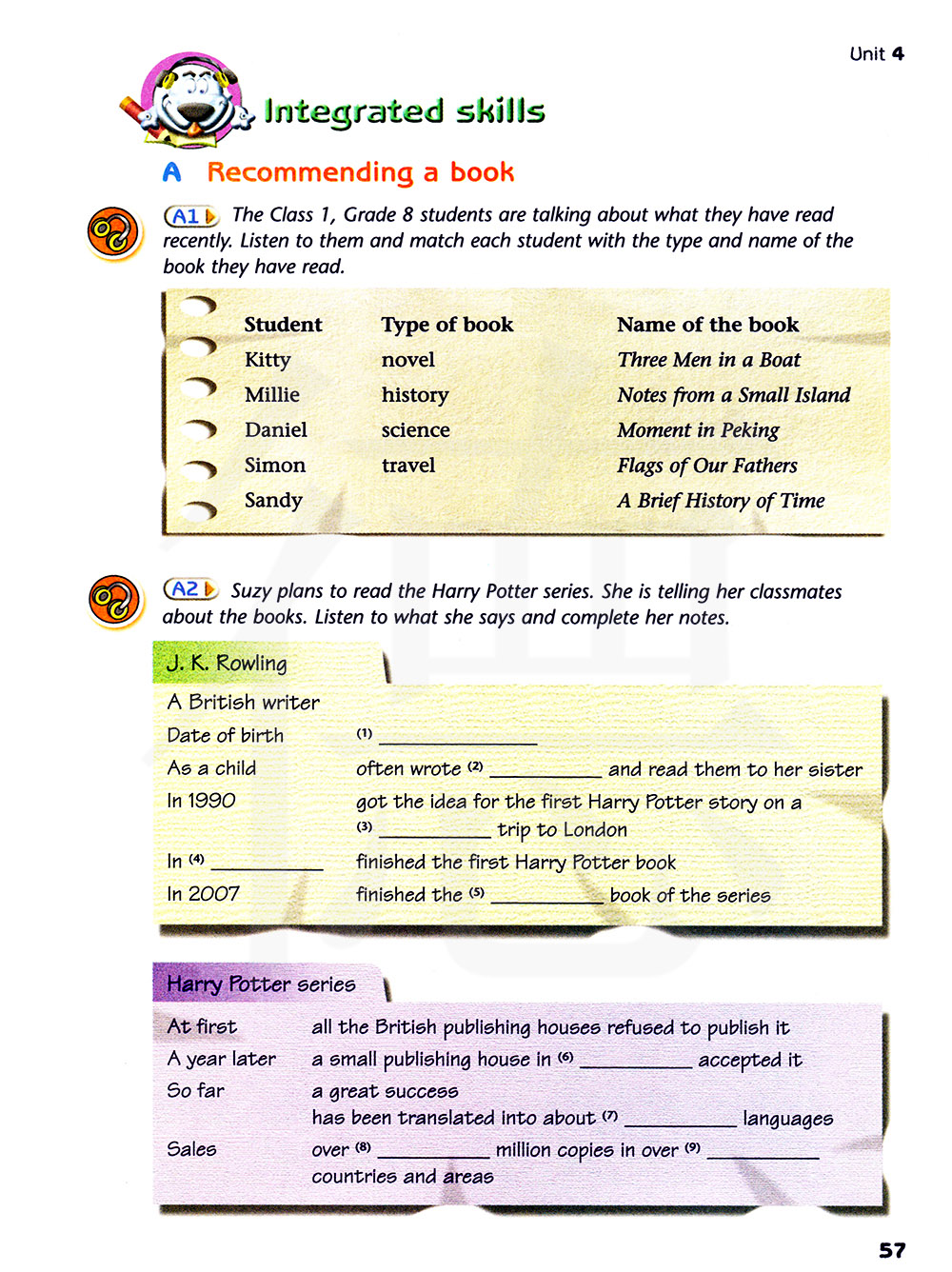 苏西计划要看《哈利.波特》故事集,她在告诉她的同学关于这些书。听一听他所说的并完成他的笔记。