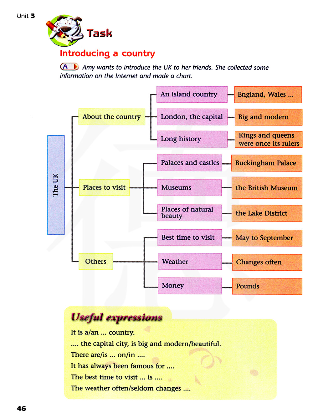 艾米想像她的朋友介绍英国。她在互联网上收集了一些信息并做了一个图表。