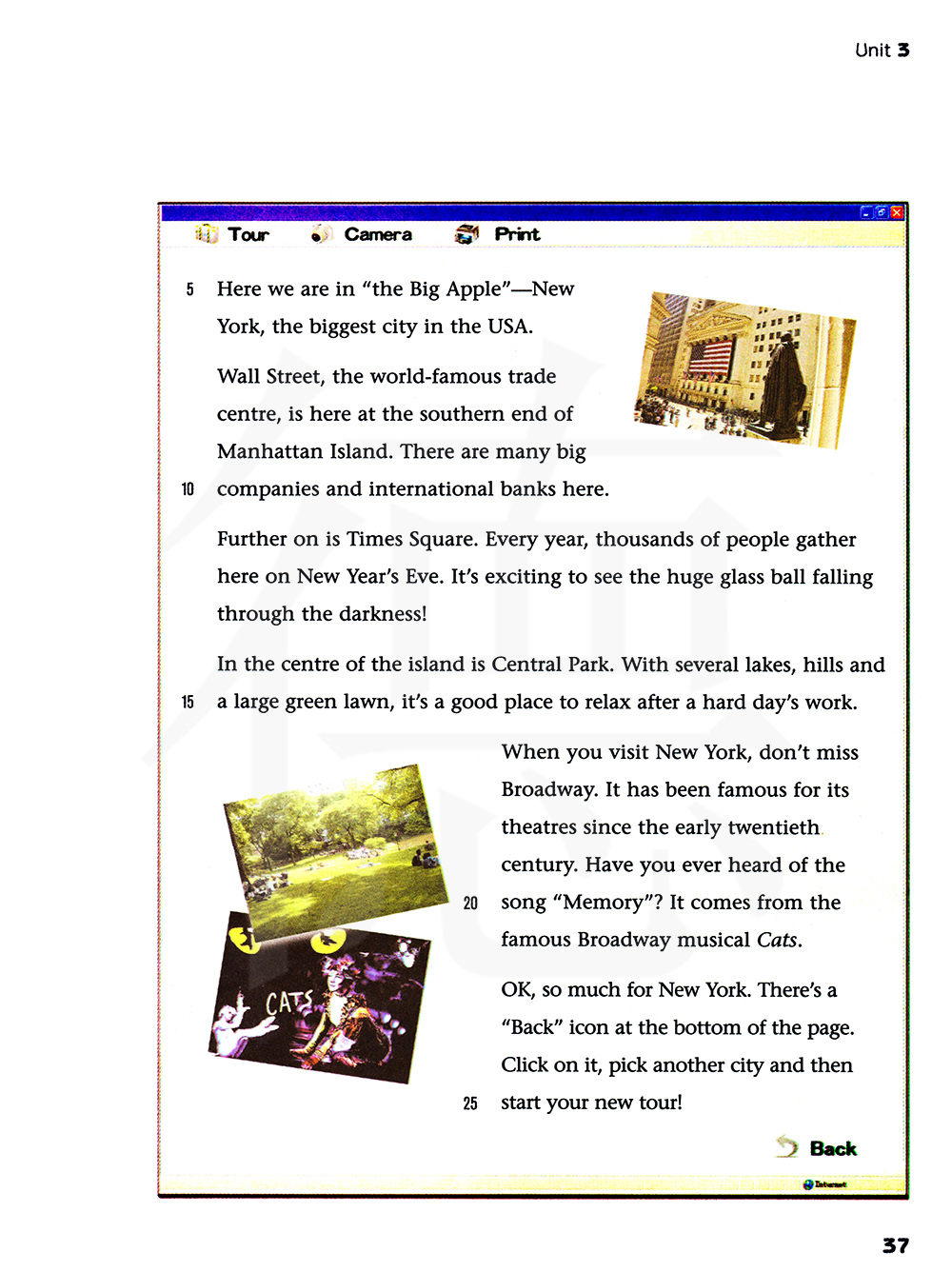 好了,纽约就到这儿了。页面底部有一个“返回”图标。点击它,选择另一个城市,然后开启你的新旅行!