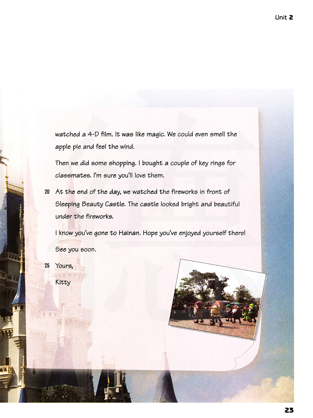 城堡在烟花的映照下显得明亮而美丽。希望你在那儿玩得开心!再见。