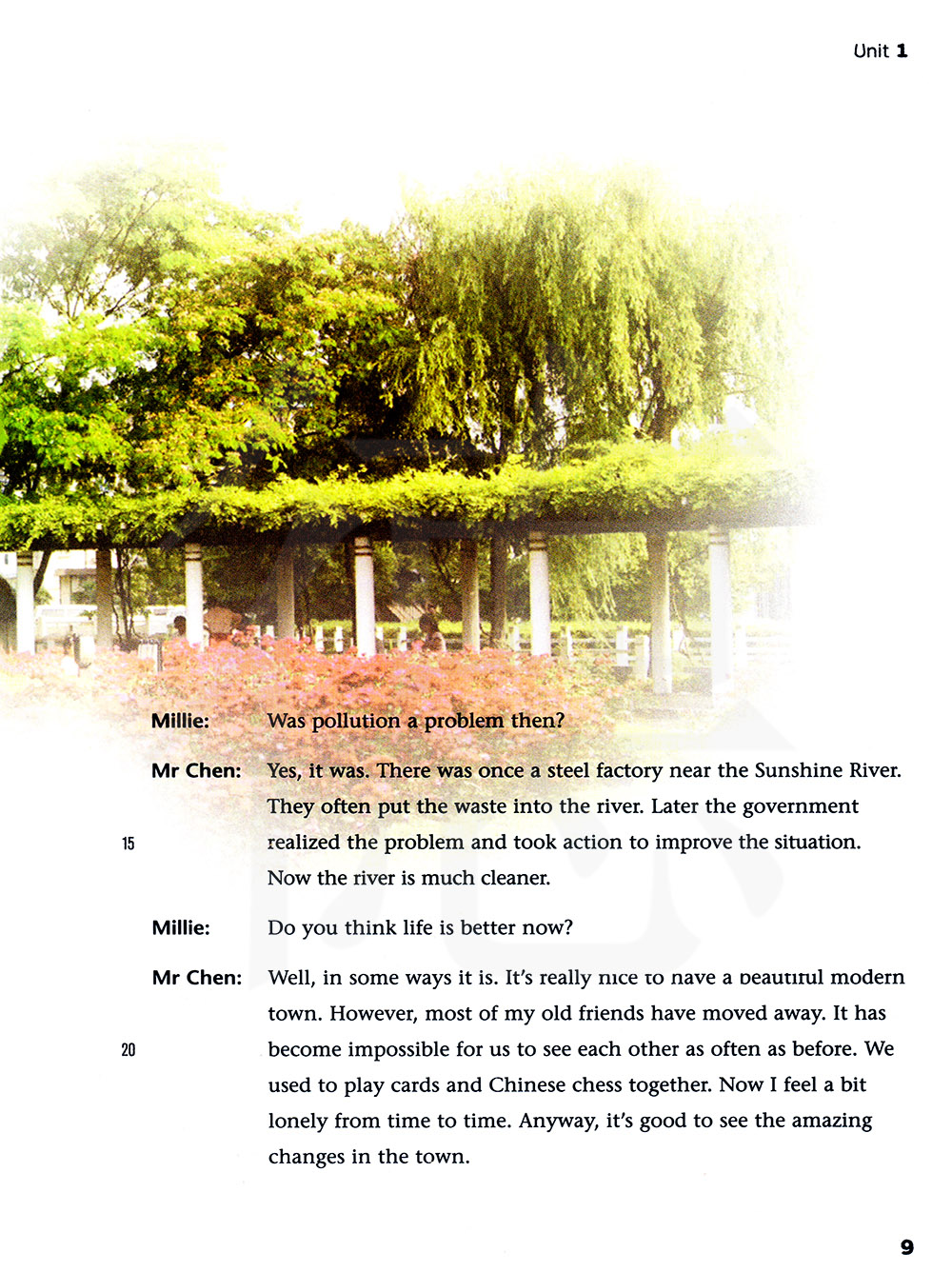 你认为现在的生活比以前好了吗?嗯,在某种程度上是的。有一个现代的城镇真好。然而,我大多数老朋友都搬走了。我们不太可能像以往一样频繁的见面了。我们以前常常在一起打牌和下象棋。v不管怎么说,看见镇上惊人的变化还是很好的。