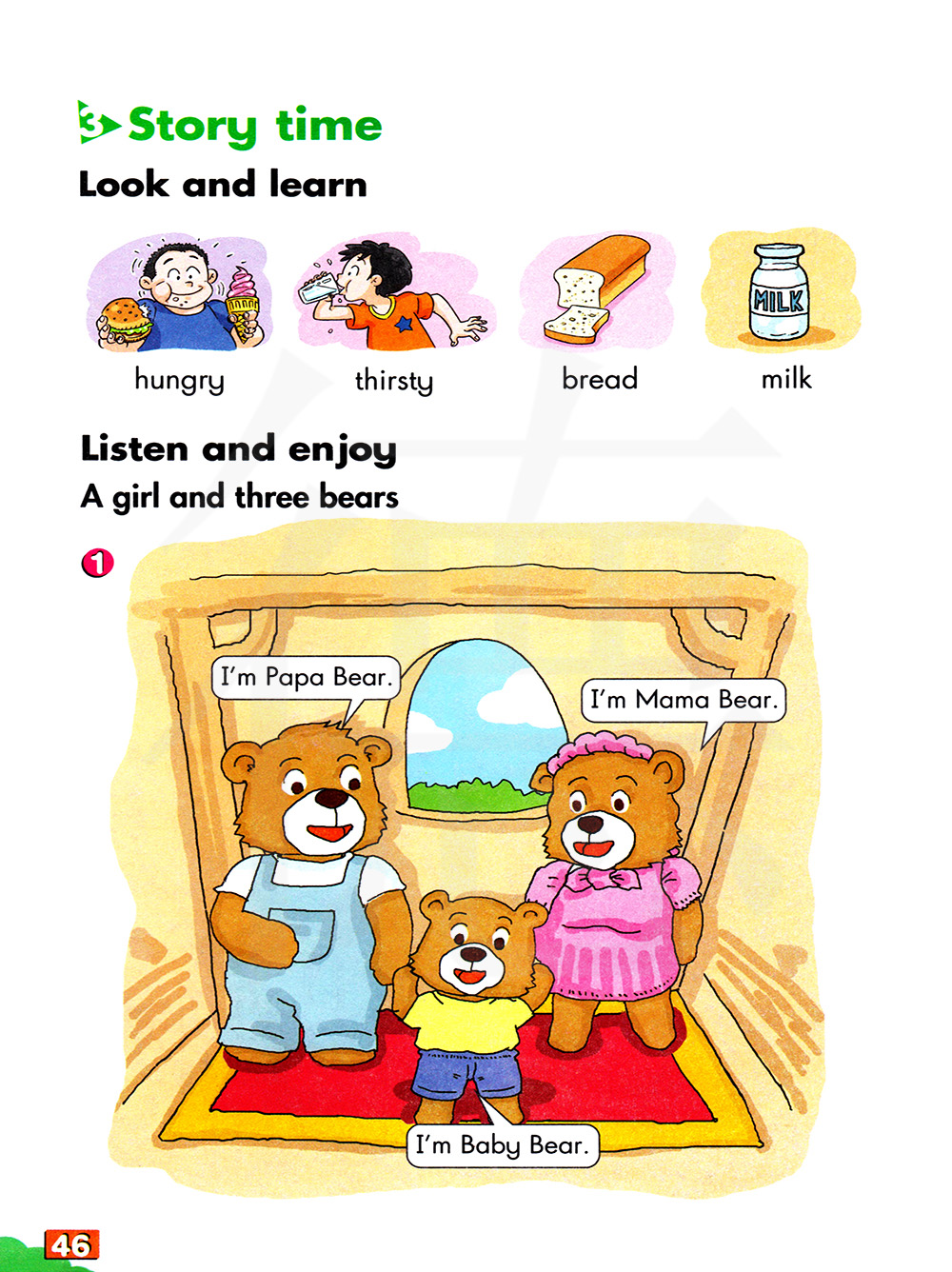hungry 饿的 thirsty 渴的 bread 面包 milk 牛奶