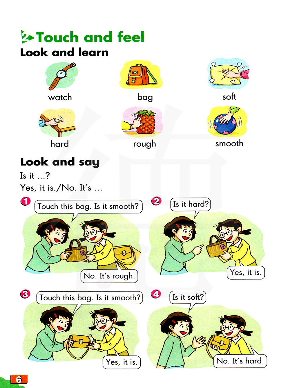 Yes, it is. 是的,它是。 / No, it isn 不,它不是。 ’ t. / No. It ’ s rough. 不,它是粗糙的。
