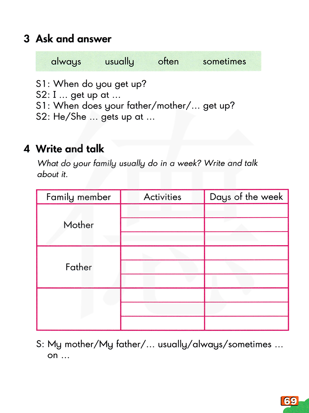 你爸爸/妈妈/……什么时候起床?他/她……起床?