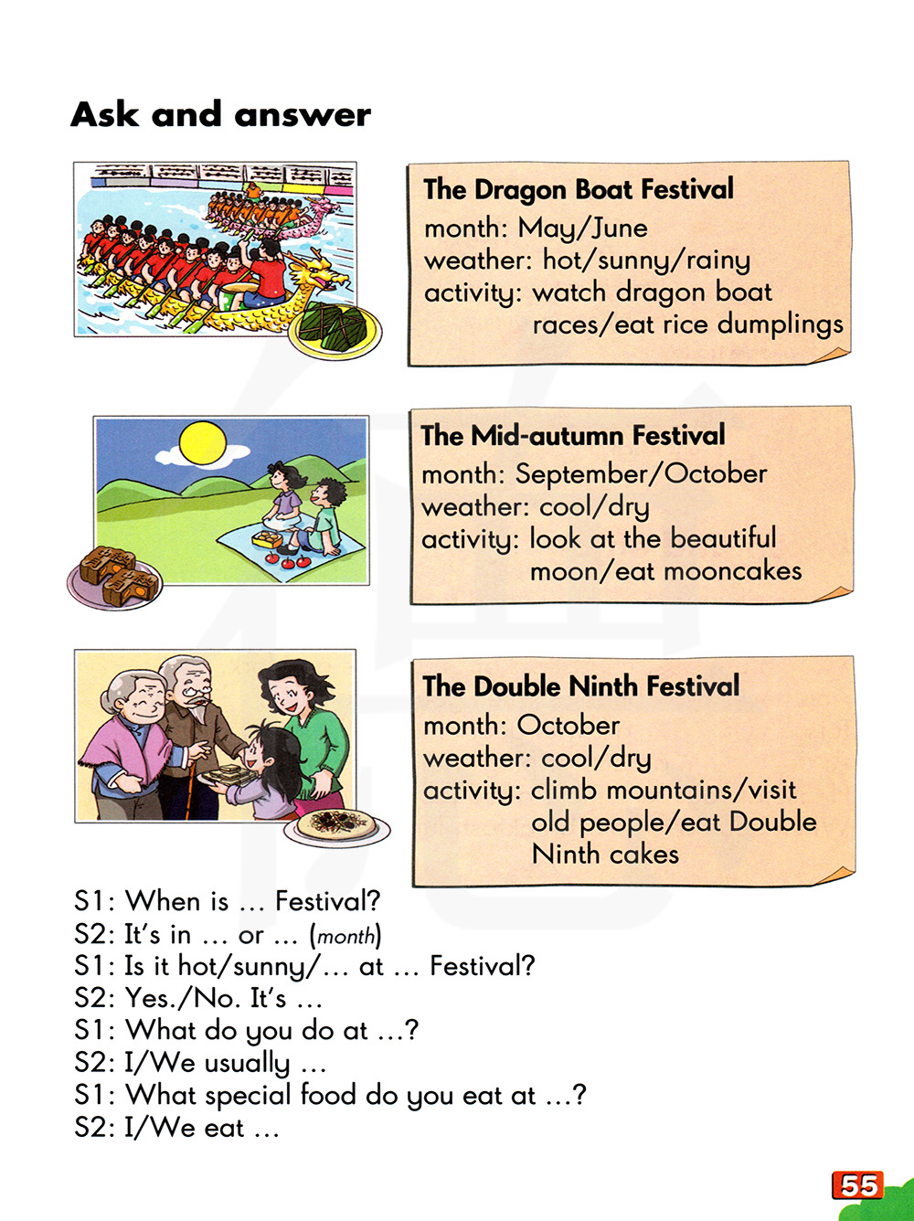 中秋节 月份:九月/十月 天气:凉爽/干燥 活动:观赏美丽的月色/吃月饼