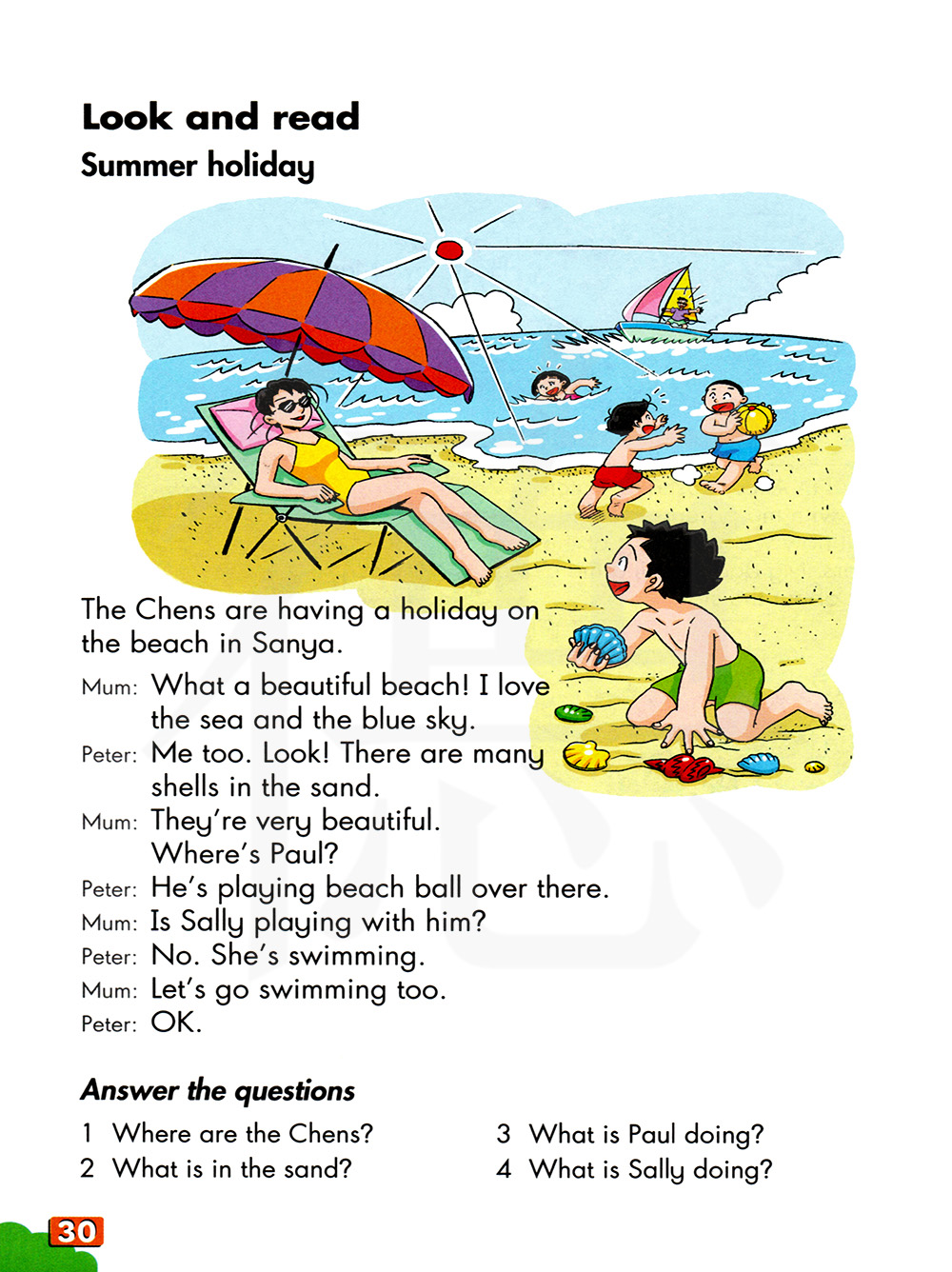 1 陈一家人在哪里? 2 沙里面有什么?