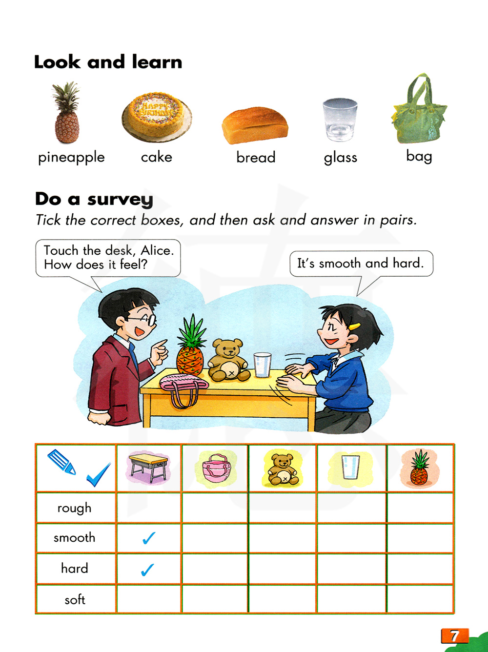 摸一摸桌子,爱丽丝。它摸起来是什么感觉?