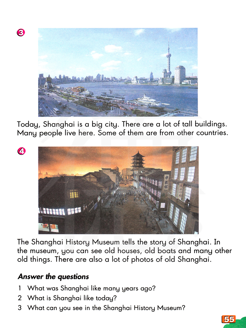 1 许多年前上海是什么样子的? 2 今天的上海是什么样的? 3 在上海历史博物馆你能看到什么?