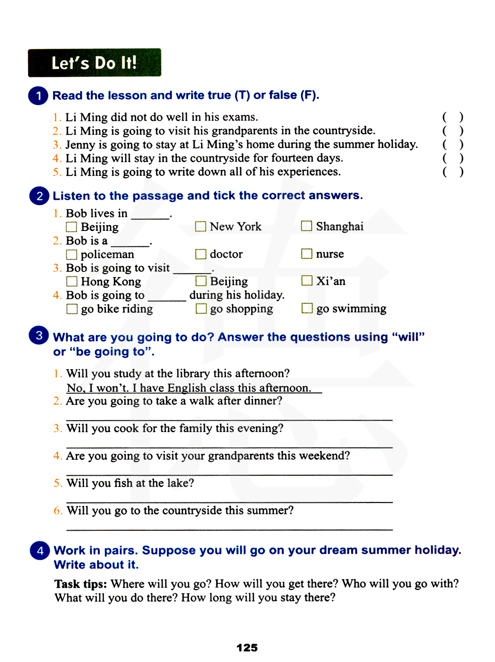 你要去做什么?使用"will"或“be going to”回答问题。