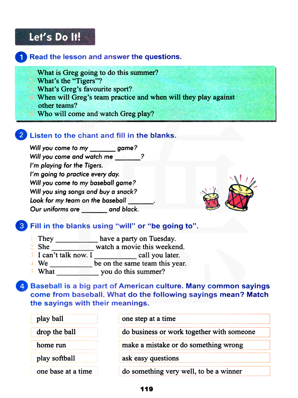 棒球是美国文化的重要部分。许多通俗的谚语出自棒球。下面的谚语是什么意思?把谚语和他们的意思相连。