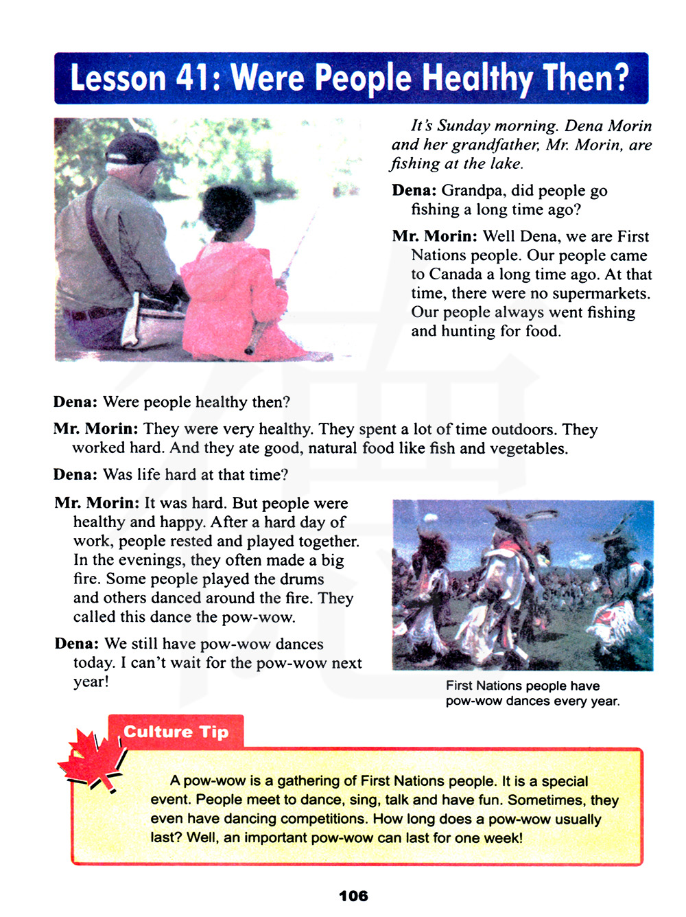 德娜,我们是“第一民族”人。我们的族人在很久以前来到了加拿大。那时候,没有超市。我们的族人经常去钓鱼、猎取食物。