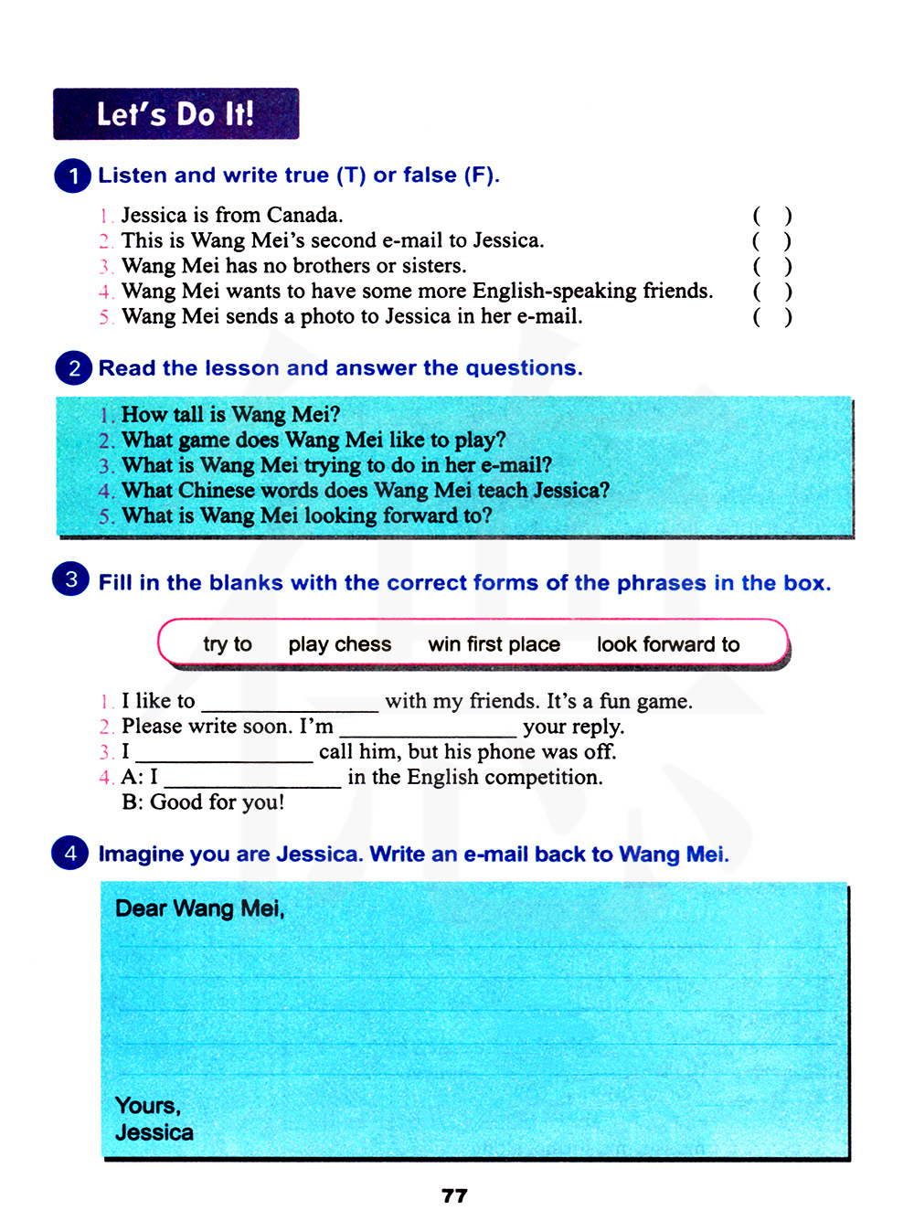 王梅没有兄弟姐妹。王梅想交更多说英语的朋友。网没在邮件中给杰西卡发了一张照片。