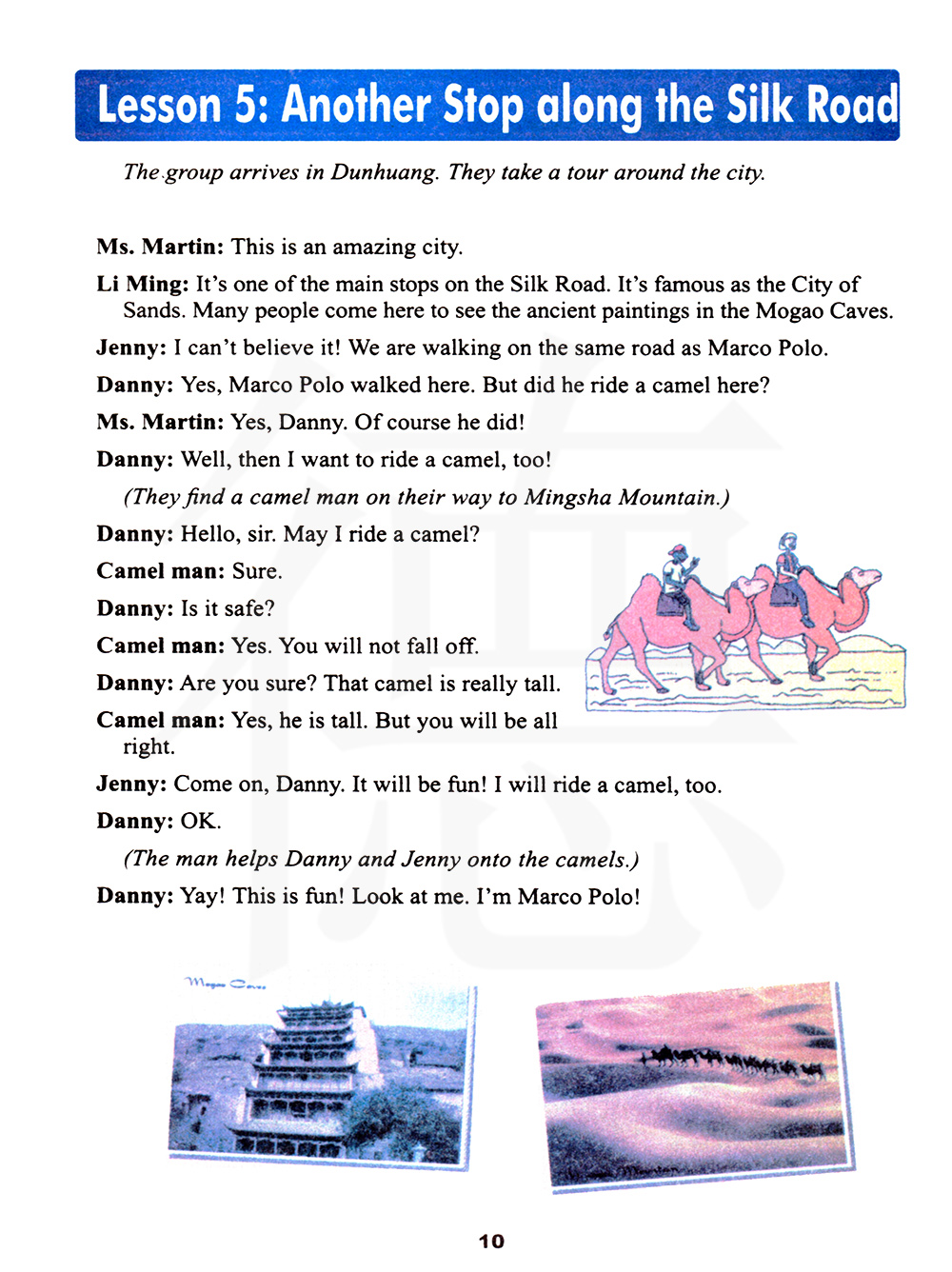 是的,丹尼。他当然骑过。那么,我也想骑骆驼!他们在去鸣沙山的路上发现了一个有骑骆驼的人