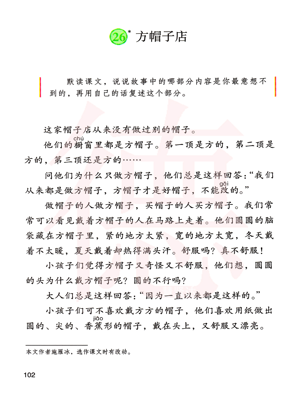 第一部分(第1-4自然段)方帽子和方帽子店的情况。