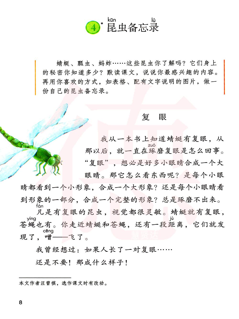 ①复眼:复眼是一种由不定数量的小眼组成的视觉器 官,主要在昆虫及甲壳类等节肢动物的身上出现,同样结构的器官亦有在双壳纲身上出现